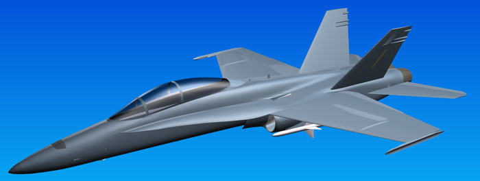 The 3D cockpit modelled in TrueSpace. All displays are switches are functional. Most of the major MFD displays are available and work according to the operation described in the Hornet manuals.